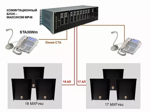Переговорные устройства подключают к портам АЛ, после чего они становятся внутренними абонентами УАТС. Возможность диспетчерской связи с пульта заложена в функционал самой УАТС и реализуется через системные телефоны АТС. Для выхода на связь с конкретными Максифонами запрограммированы кнопки прямого вызова на системном телефоне. Устройства установлены в режим автоприема. Более того, для каждого устройства можно включить режим скрытого аудиомониторинга.