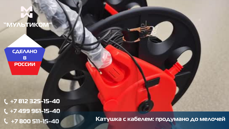 - Эргономика при транспортировке — мы продумали всё до мелочей, даже ручки на кабельных катушках на время перевозки поворачиваются внутрь, чтобы не занимать лишнее место и не ломаться.