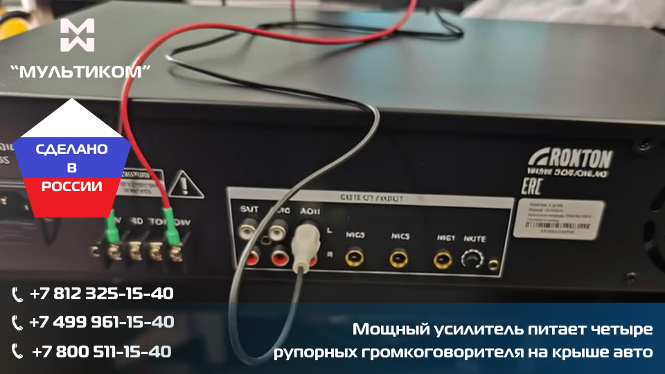 - Мега-голос (AA-360) — мощный усилитель на 360 Вт питает четыре рупорных громкоговорителя на крыше авто. Вас услышат все в радиусе сотен метров,