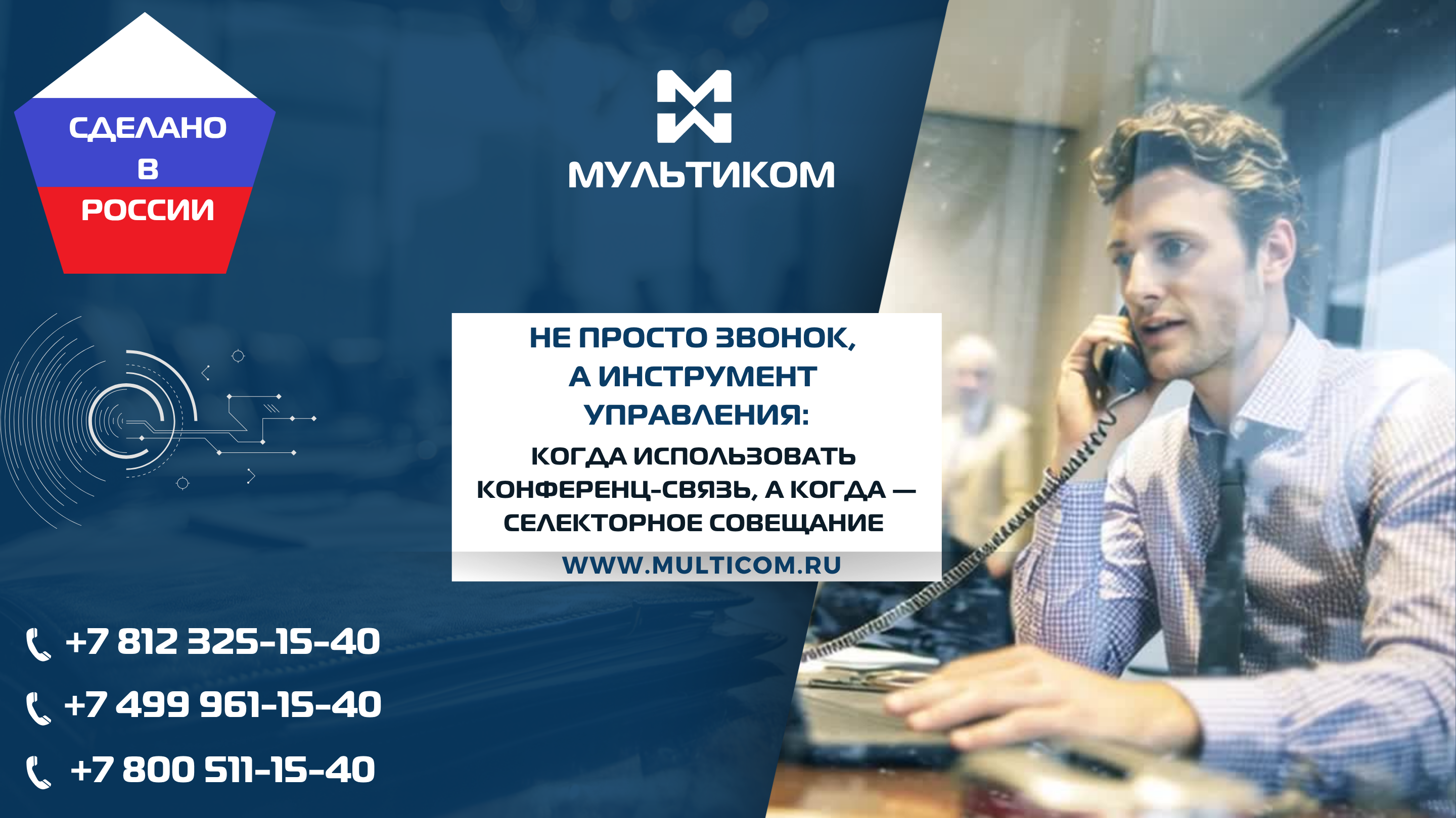 Таким образом, если вам нужно быстро и неформально обсудить вопрос с парой коллег — вы используете конференц-связь. Если вам нужно провести управляемую встречу для контроля, планирования и информирования большой группы людей — вы организуете селекторное совещание.
