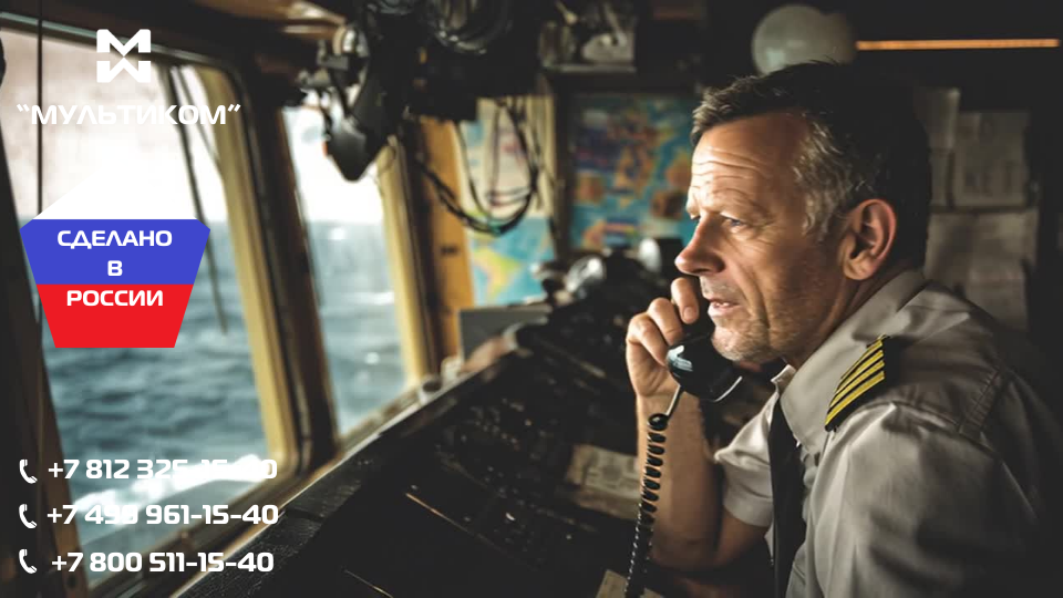 - Живучесть — дублирование систем питания. Если на судне отключается основное электричество (220В), станция мгновенно и незаметно переходит на аварийное питание от судовых аккумуляторов (24В). Связь между капитаном и машинным отделением не прервется ни на секунду.